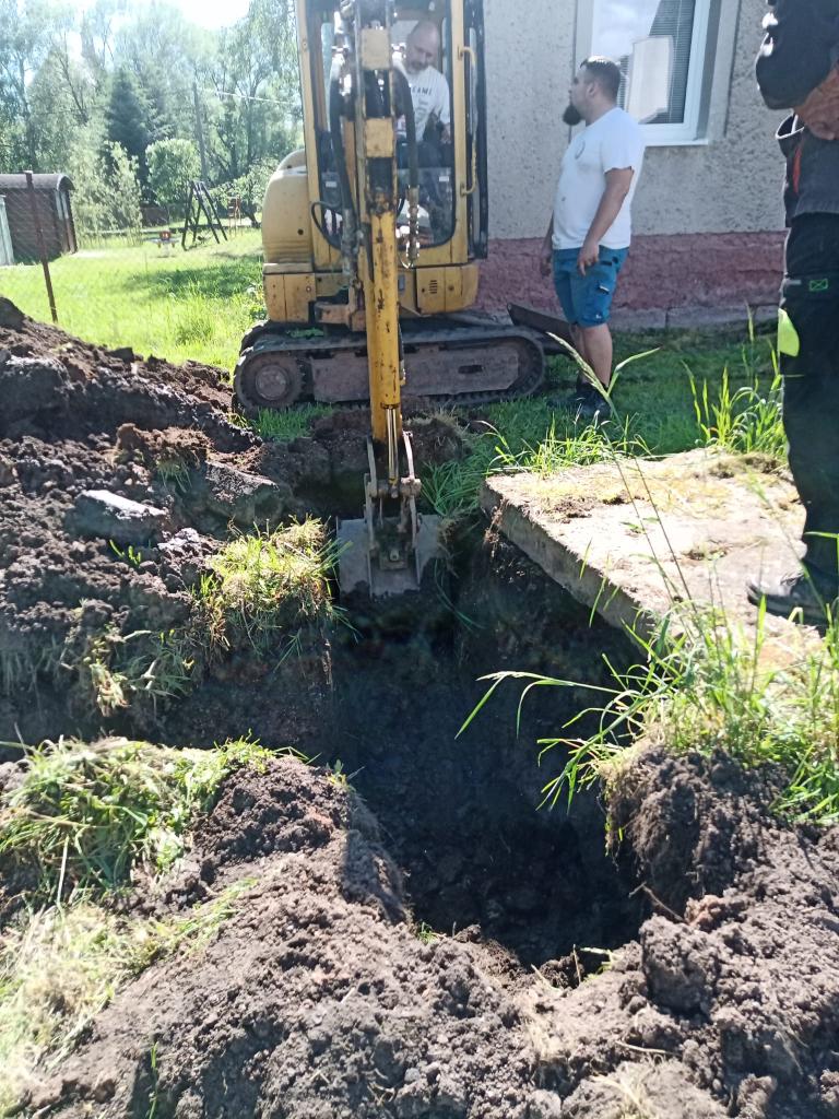 Pan Ing. Radim Mach provedl rychlou opravu narušeného potrubí u odtoku ze septiku pro školku.