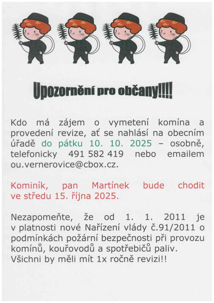 Kominík bude chodit ve středu 15.října 2025