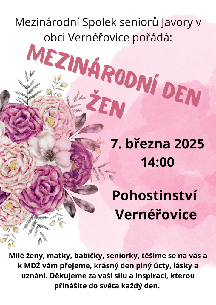 Mezinárodní Spolek seniorů Javory v obci Vernéřovice pořádá 7.března 2025 MDŽ