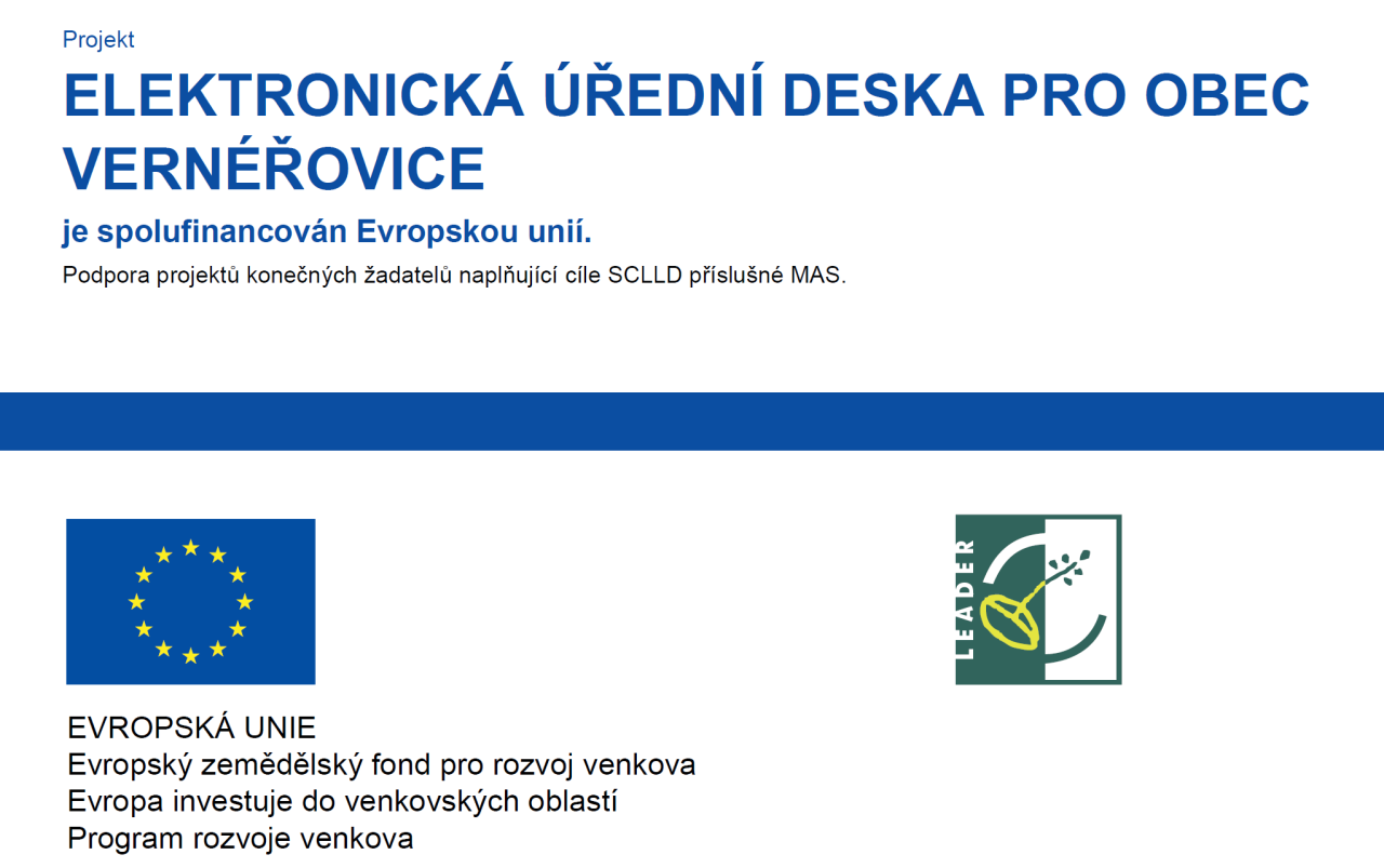 Projekt ELEKTRONICKÁ ÚŘEDNÍ DESKA PRO OBEC VERNÉŘOVICE je spolufinancován Evropskou unií.
